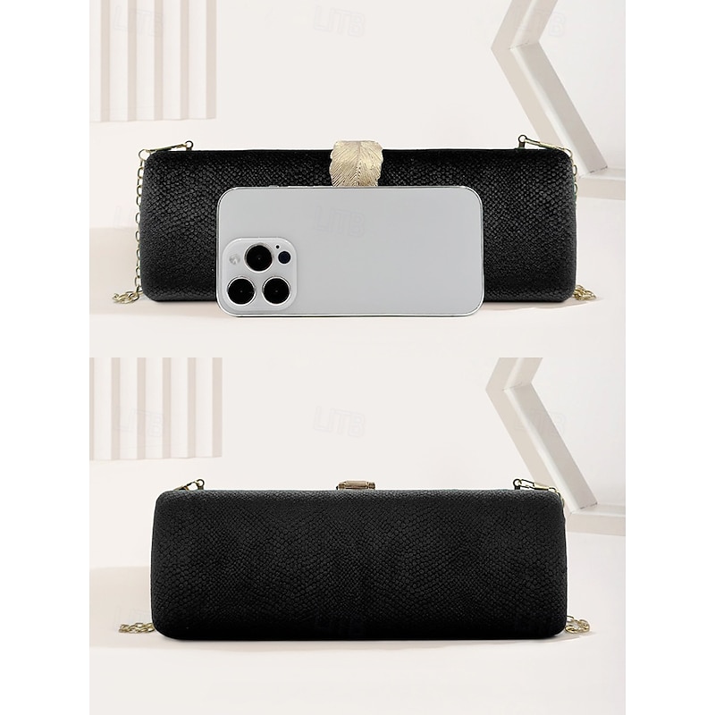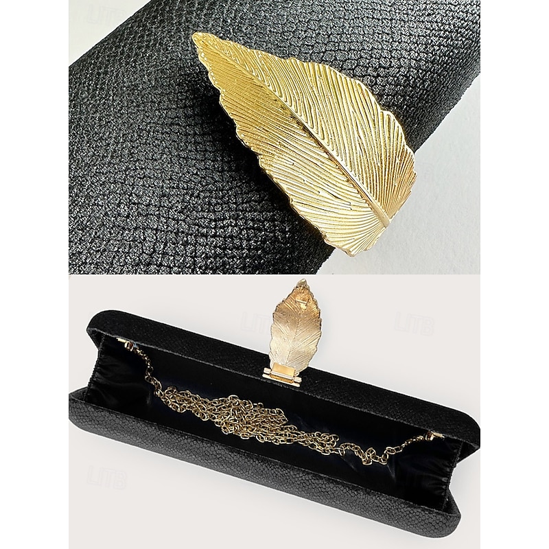 Women's Velvet Clutch Bag with Gold Feather Accent and Chain Strap - Elegant Evening Bag for Formal Events and Parties 19