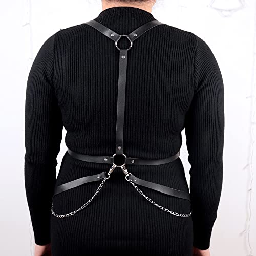 • 【High Quality Materials】:Punk plus size harness chain belt is made of PU leather and alloy, soft and flexible, durable and comfortable for wear, womens harness belt plus size