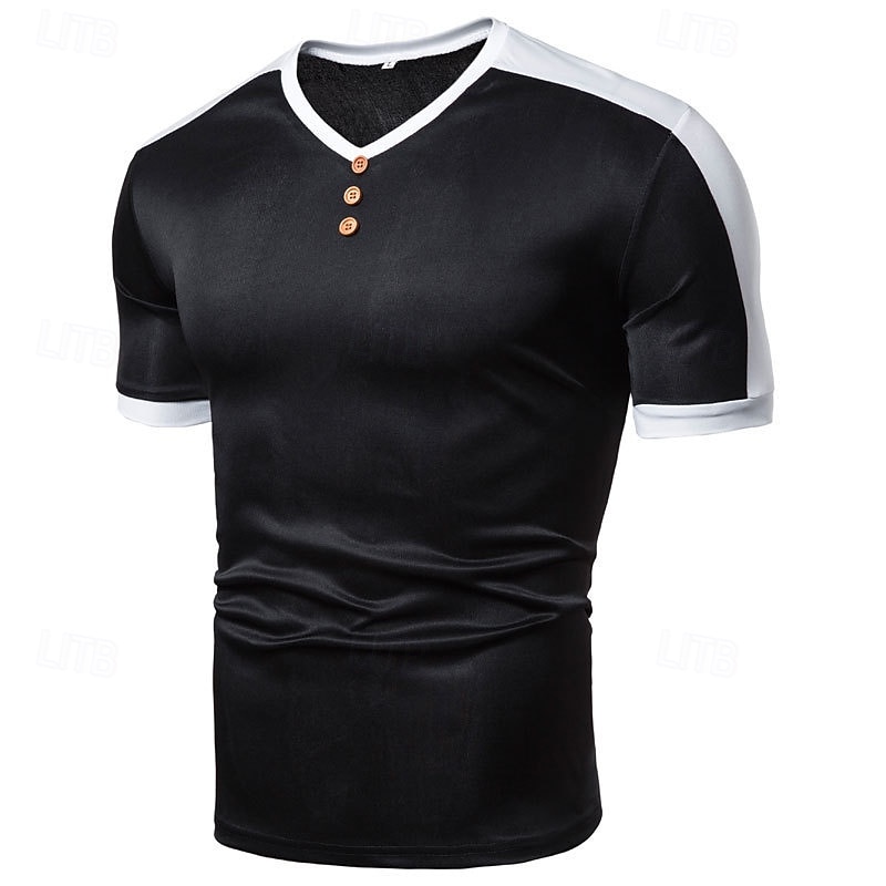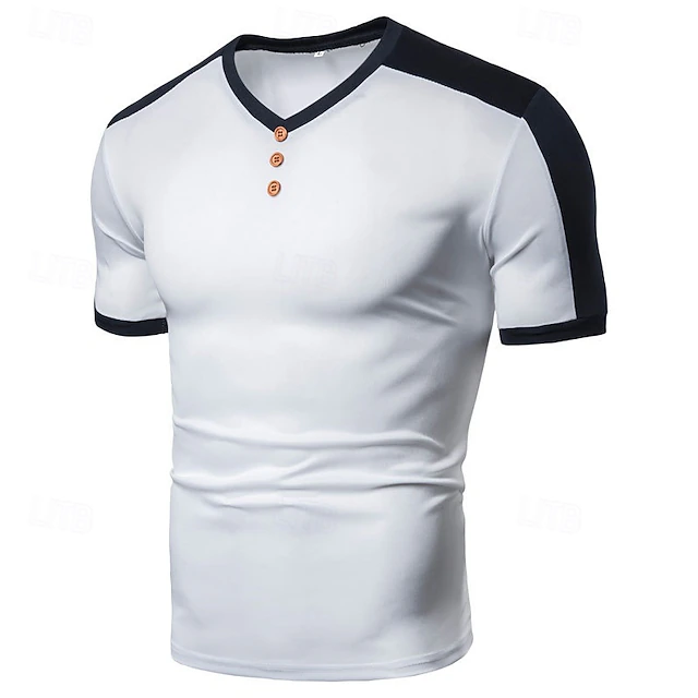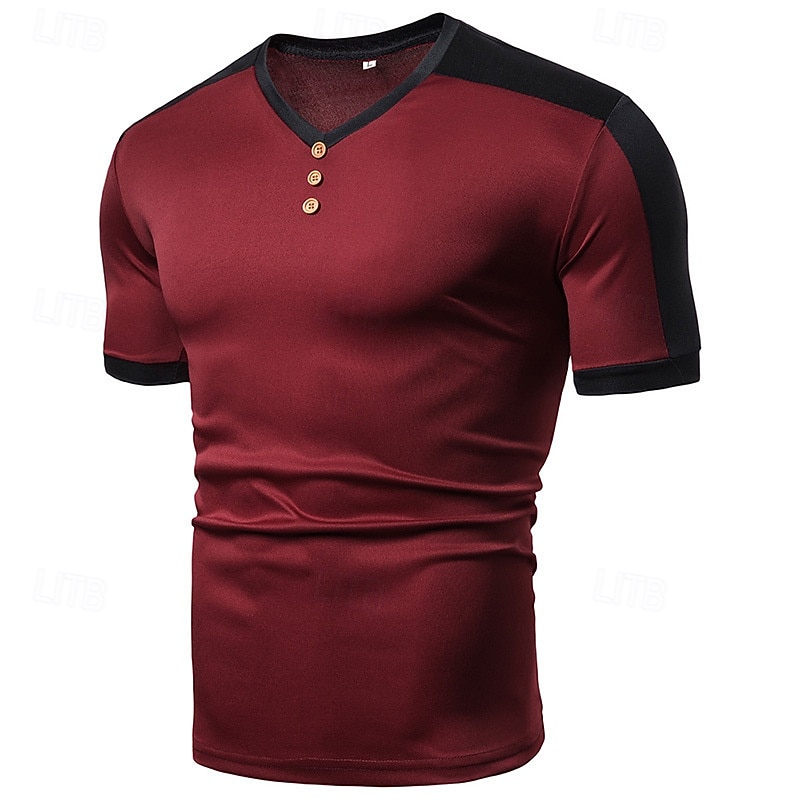 More information about Men's Button T Shirt T Shirt Tee Short Sleeve Shirt Short Sleeve V Neck Summer Spring Color Block Fashion Designer Basic Buttons Vacation Street Going out Black White Wine Top Tee for Men