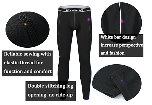 • 【INTIMATE DETAILS】This thermal compression pants for men is tagless, won't pinch or bind, make sure comfort. The cuffs of this thermal tights for men is used double needle stitching and with our good struction design can prevent from ride-up, make sure comfortable and functional. The white bar designed on pouch and front thighs of this men's thermal underwewar bottoms has increased its perspective and fashion