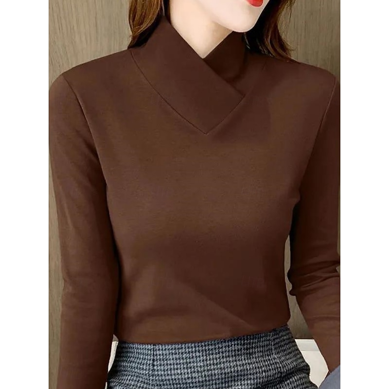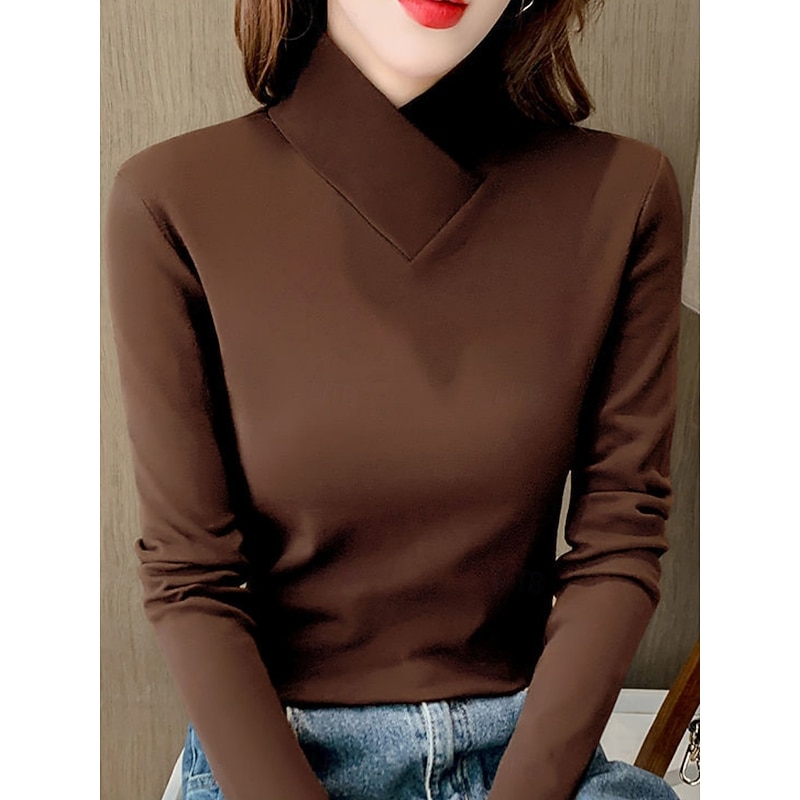 More information about Women's Blouse Solid Color Elegant Stylish Basic Long Sleeve Turtleneck Regular Tops Daily Black White Blue Brown Spring Fall Winter
