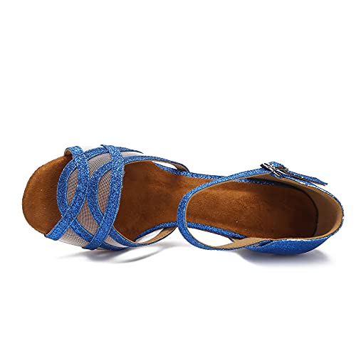 Women's Latin Dance Shoes Female's Ballroom Salsa Dance Shoes(B-Style Blue Size 10.5) 6