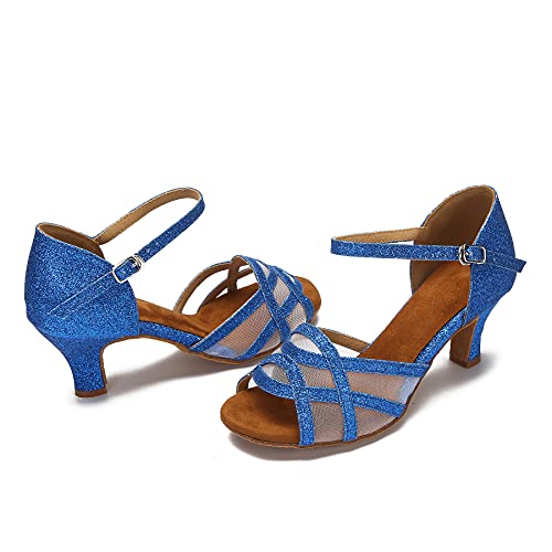 HOT ! Women's Latin Dance Shoes Female's Ballroom Salsa Dance Shoes(B-Style Blue Size 10.5)