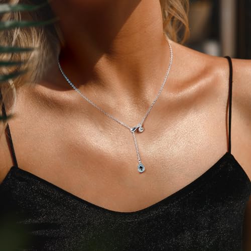 More information about Tiny Silver Aquamarine Y Necklace Teardrop Blue Birthstone Necklace Adjustable Light Blue Gemstone Jewelry for Daily Outfit