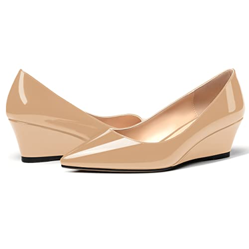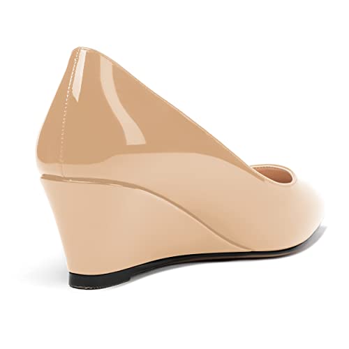 MERRORI Women's Slip On Patent Solid Square Toe Wedge Low Heel Pumps Shoes 2 Inch 5