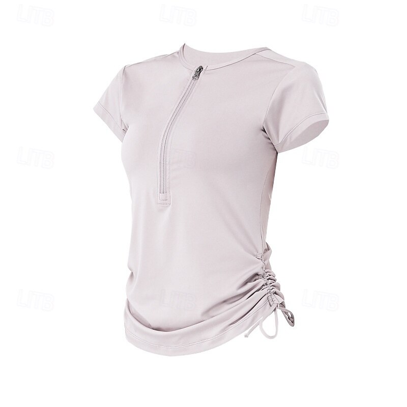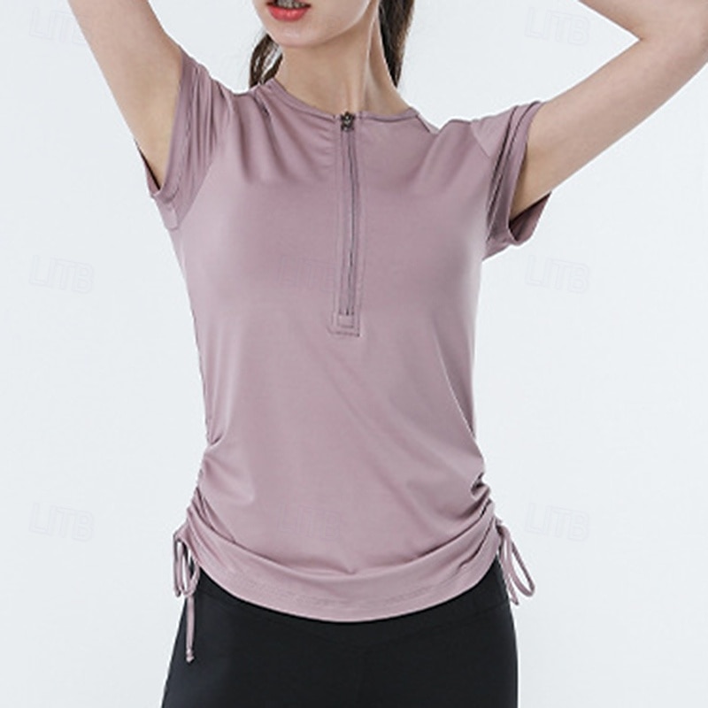 Women's Sports shirts Skin Friendly Softness Breathable Half Zip Short Sleeve Sports Solid Color Top For Gym Pilates Zumba Tight Fit Activewear 25