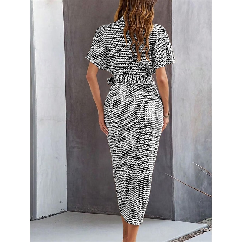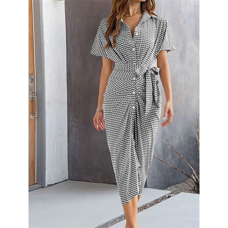 Women's Midi Dress Blazer Dress Stylish Casual Vacation Work Daily Regular Fit Plaid Stripe Half Sleeve Shirt Collar Black Brown Summer Spring Fall 2