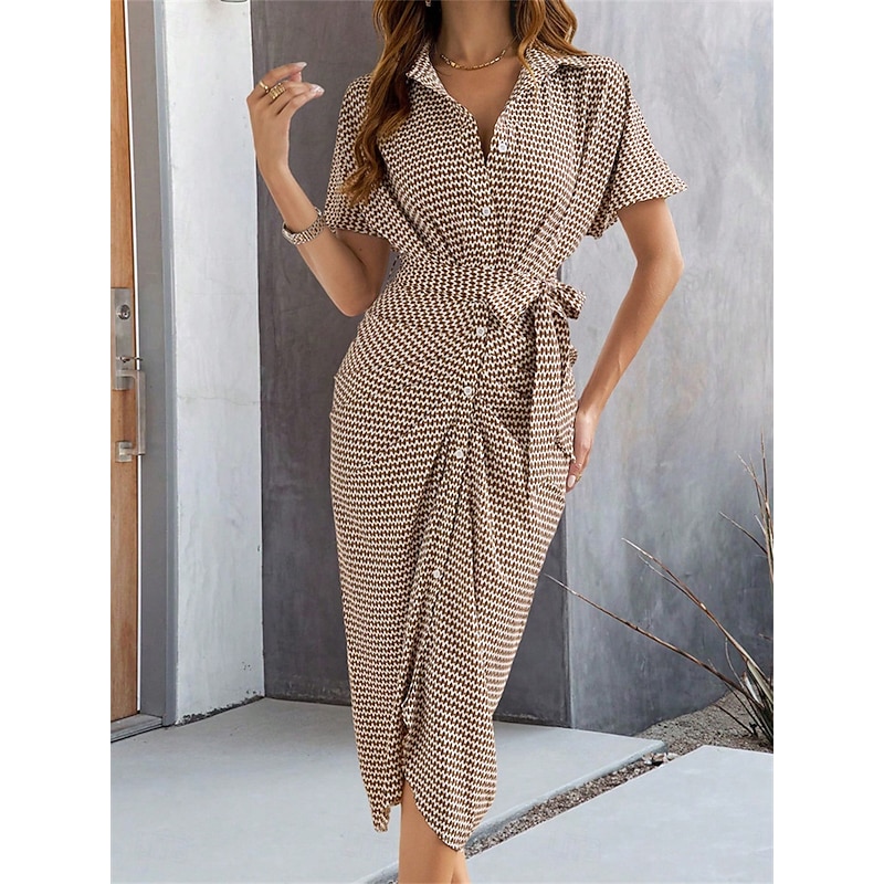 Women's Midi Dress Blazer Dress Stylish Casual Vacation Work Daily Regular Fit Plaid Stripe Half Sleeve Shirt Collar Black Brown Summer Spring Fall 9