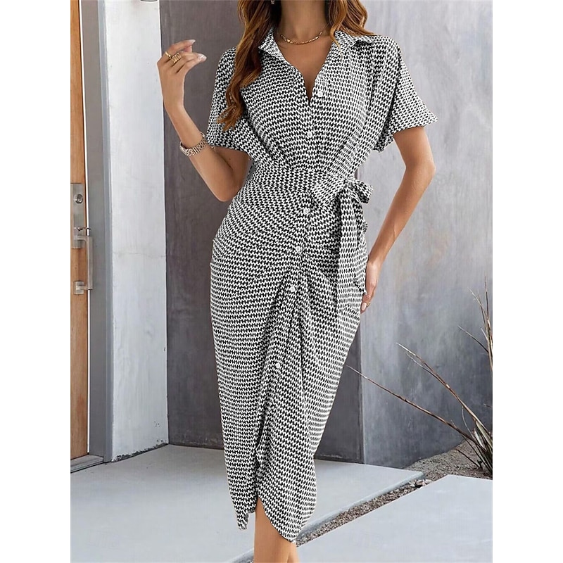 Women's Midi Dress Blazer Dress Stylish Casual Vacation Work Daily Regular Fit Plaid Stripe Half Sleeve Shirt Collar Black Brown Summer Spring Fall 14