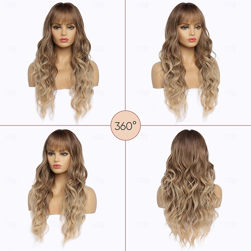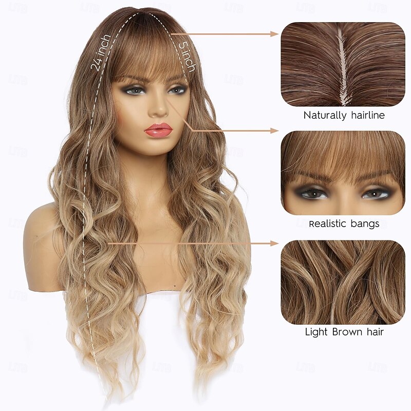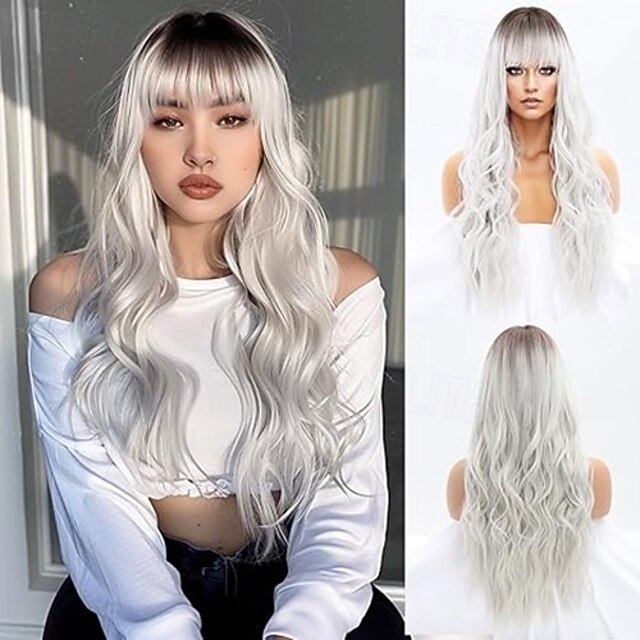 $19.99 - Long Wavy Wig with Bangs for White Women Natural Looking Female Wigs With Dark Roots Synthetic Fiber Hair Wig for Daily Party Use Chest Length Curly Wig 2025. Shop for cheap Synthetic Trendy Wigs online? Buy at lightinthebox.com on sale today!