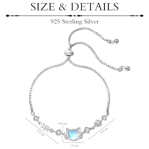 • 【High-Quality Material】 Our cat bracelet is meticulously crafted with quality 925 sterling silver, adorned with moonstone and zircon, ensuring a glossy finish and long-lasting durability