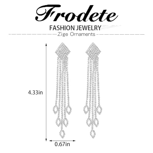 Rhinestone Drop Earrings for Women Sparkly Long Tassel Earrings Dangling Crystal Statement Prom Earrings Wedding Party Dress Outfit Jewerly Gifts 4