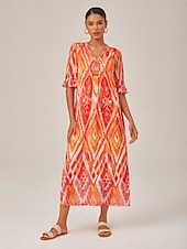 More information about Chiffon Ethnic Print V Neck Midi Dress