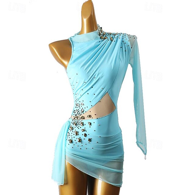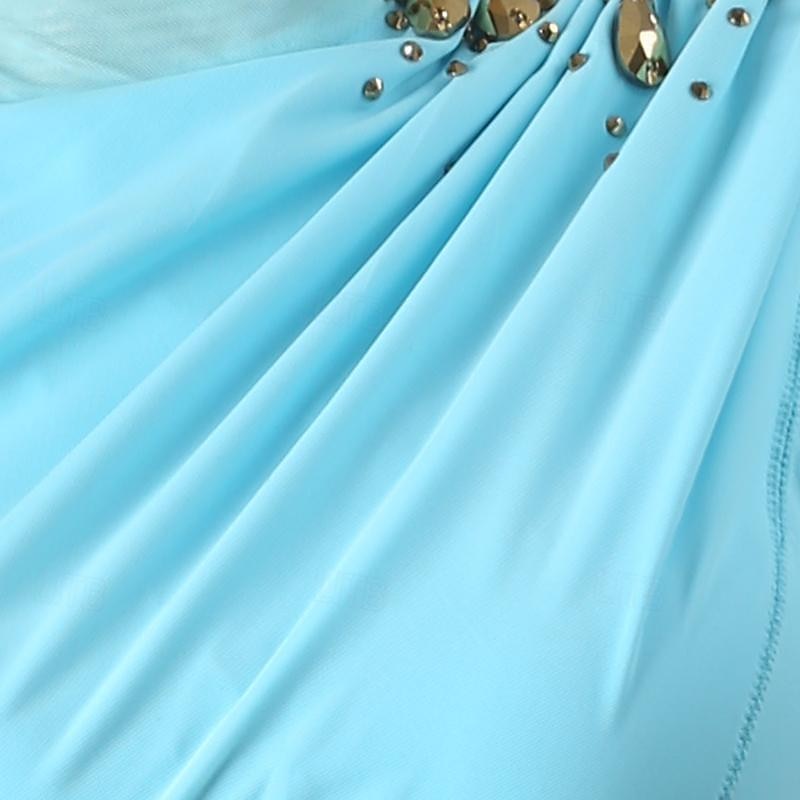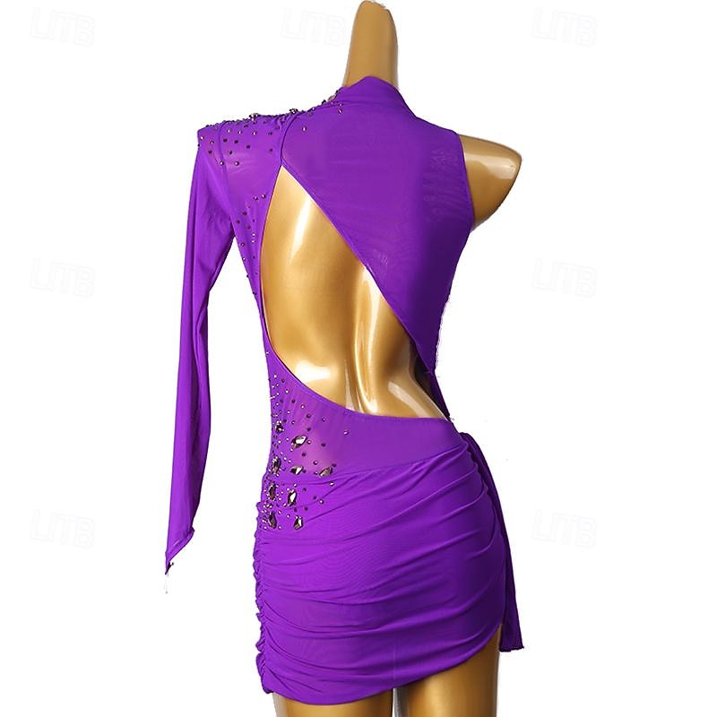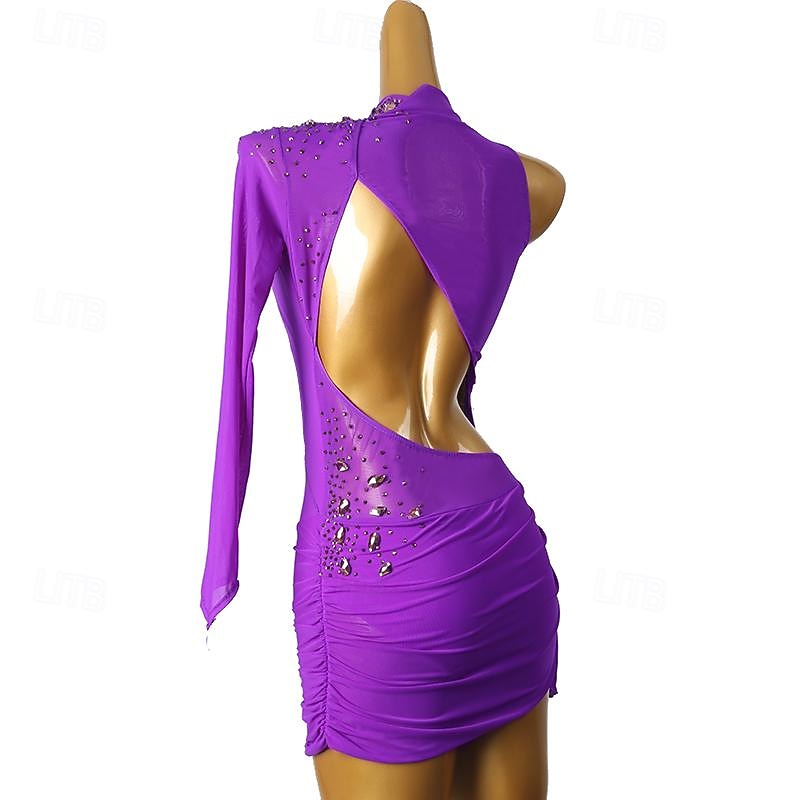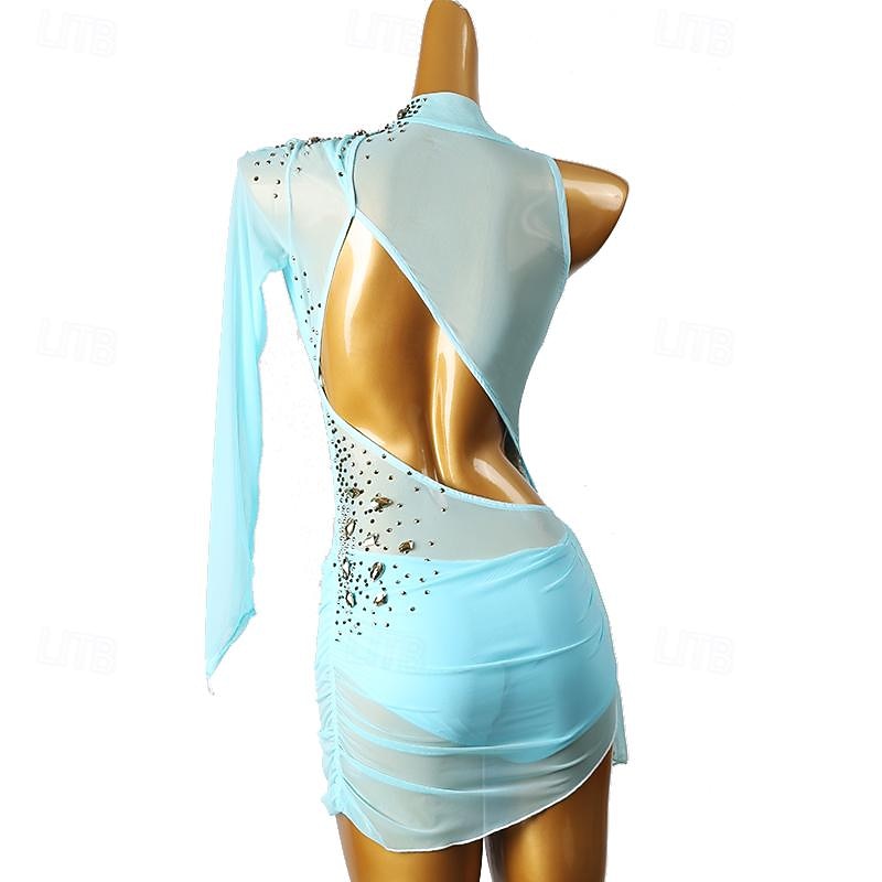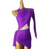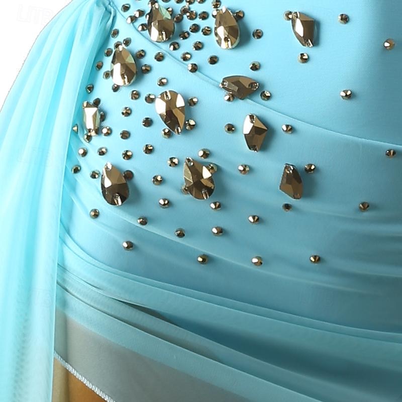 More information about Figure Skating Dress Women's Girls' Ice Skating Dress Violet Sky Blue Patchwork Open Back Mesh High Elasticity Training Competition Skating Wear Classic Long Sleeve Ice Skating Figure Skating