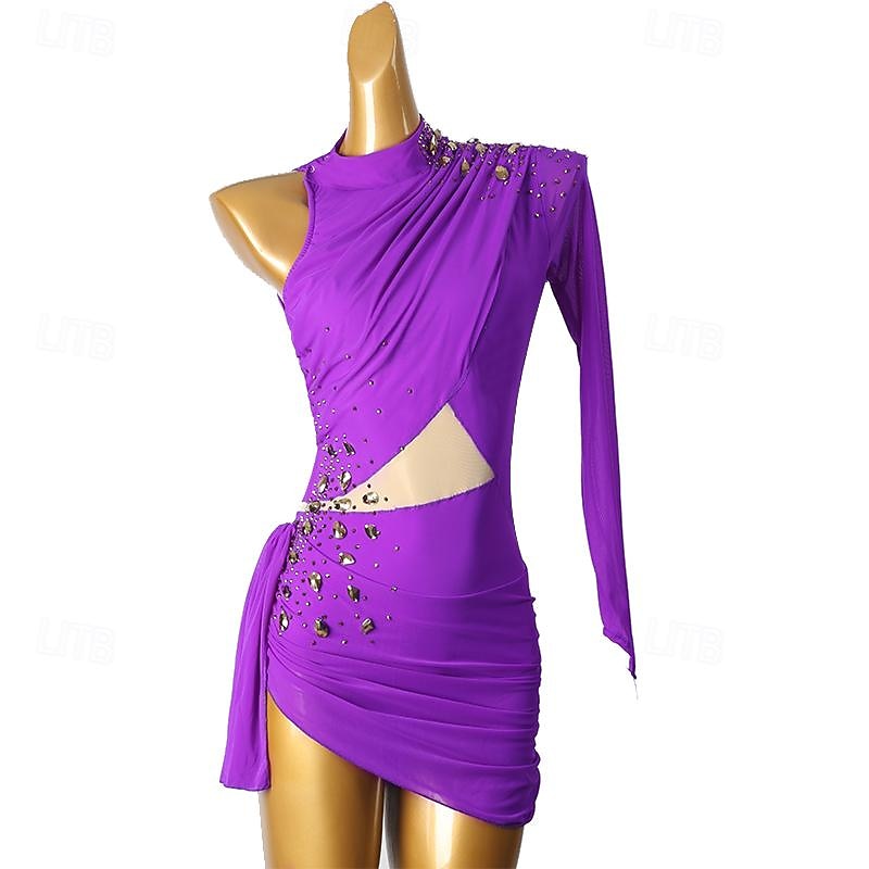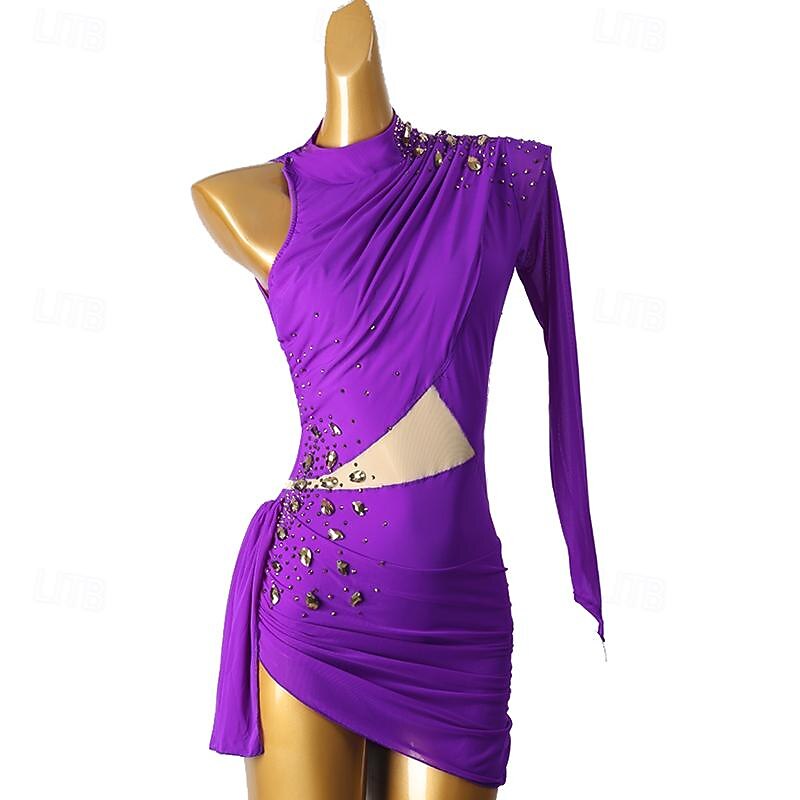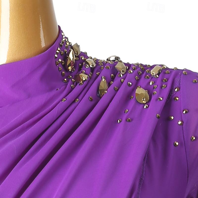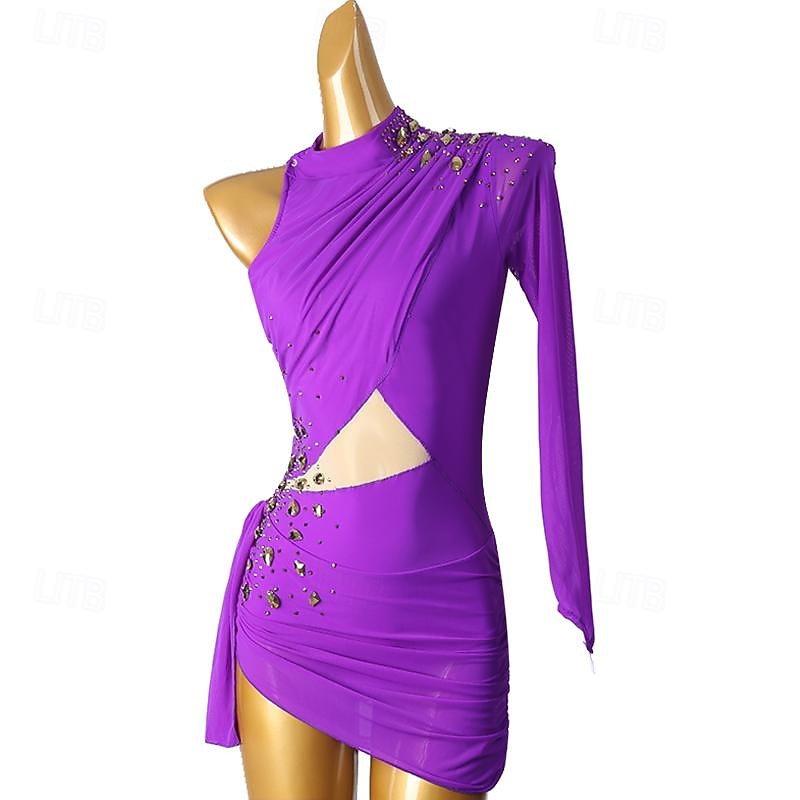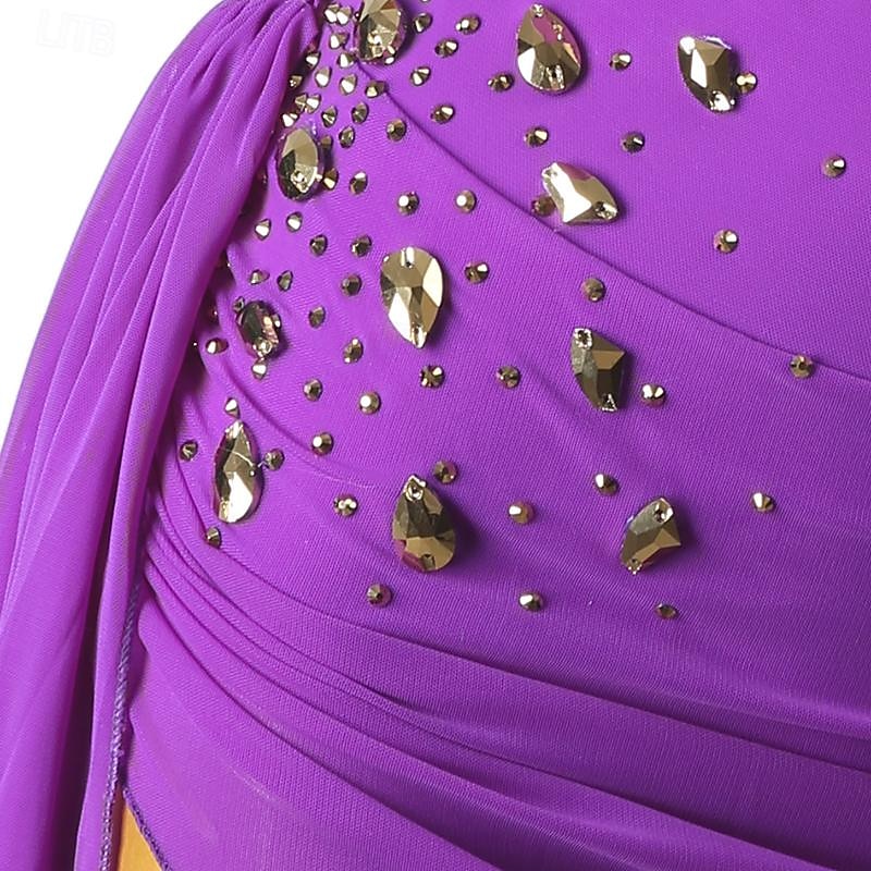 Figure Skating Dress Women's Girls' Ice Skating Dress Violet Sky Blue Patchwork Open Back Mesh High Elasticity Training Competition Skating Wear Classic Long Sleeve Ice Skating Figure Skating 10