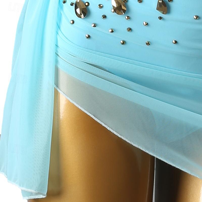 Figure Skating Dress Women's Girls' Ice Skating Dress Violet Sky Blue Patchwork Open Back Mesh High Elasticity Training Competition Skating Wear Classic Long Sleeve Ice Skating Figure Skating 15