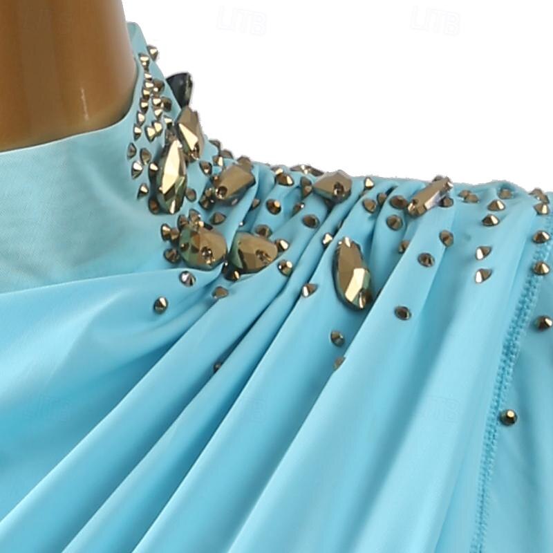 Figure Skating Dress Women's Girls' Ice Skating Dress Violet Sky Blue Patchwork Open Back Mesh High Elasticity Training Competition Skating Wear Classic Long Sleeve Ice Skating Figure Skating 5