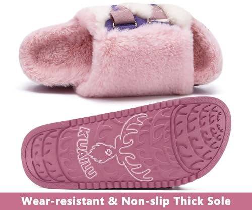 KuaiLu Womens Fuzzy Platform Open Toe Slipper with Arch Support Fluffy Furry Slides Orthotic Faux Rabbit Fur Sandal Ajustable House Shoes Indoor Outdoor Pink Size 8 7