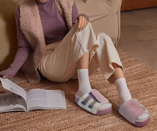 • FUZZY & on trend SLIPPERS FOR WOMEN: furry fluffy faux fur upper gives your feet the ultimate cozy,comfort,moisture wicking plush lining meets open toe design cares for the health of your feet and allows the toes to breathe freely.