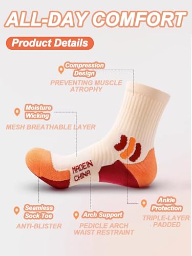 • 【Anti-Blister & Ankle Protection Design】Triple-layer padded ankle zones and a seamless toe design protect against blisters and skin irritation. Perfect anti-blister running socks for women who prioritize comfort during long-distance walking, training, or outdoor sports.