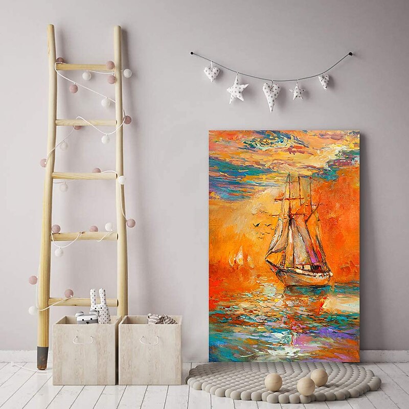 Handmade Oil Painting Canvas Wall Art Decoration Modern Sailboat Landscape for Home Decor Rolled Frameless Unstretched Painting 1