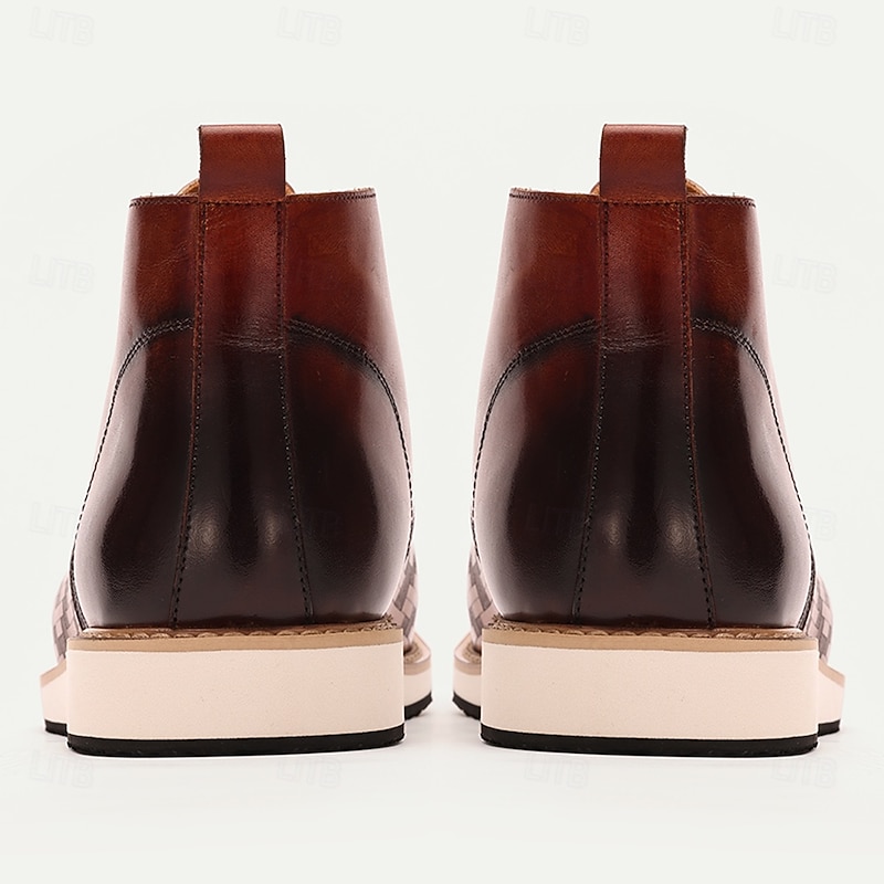 Men's Premium Cowhide Leather Lace-Up Ankle Boots with Woven Pattern – Stylish Casual Boots for Formal and Everyday Wear 7