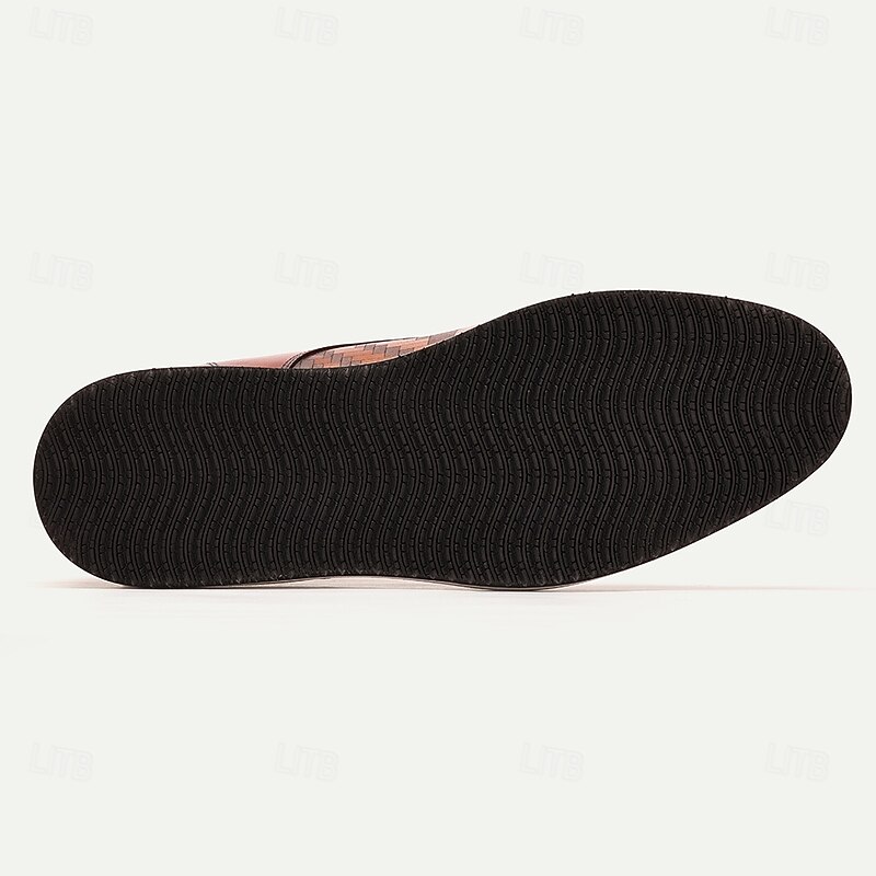 Highlights [Fabric] : Crafted with 100% premium cowhide leather, these men's ankle boots offer a luxurious feel and robust performance. The leather upper is accented by a unique woven pattern that adds texture and style, making these boots a sophisticated choice. [Fit] : Featuring a classic lace-up design, these boots provide a secure fit, suitable for both formal and casual wear. The round toe shape ensures comfort, while the leather lining enhances breathability and softness, offering a comfortable wearing experience. [Design Highlights] : These boots showcase a stylish Oxford-inspired silhouette with a rich dark brown hue, perfect for making a statement. The woven pattern on the upper adds a touch of artistry and refinement, making these boots a standout addition to any wardrobe. The rubber outsole ensures slip resistance, offering both style and function. [Occasions] : Ideal for fall and winter seasons, these versatile boots are perfect for a variety of occasions, from daily errands to home gatherings. Whether it's a day out in the city or a more formal event, these boots provide the perfect blend of elegance and practicality. [Size Range] : Available in a wide range of sizes from US6 to US13 (EU39 to EU46, UK5 to UK12), these boots cater to various fit preferences, ensuring that you find the perfect size for your comfort and style.