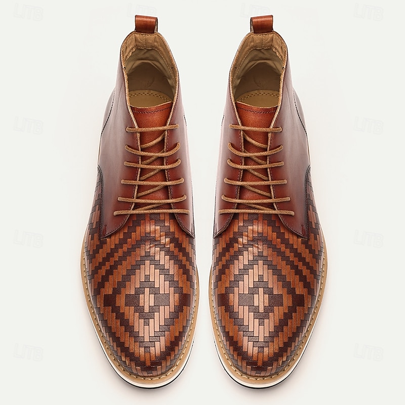 More information about Men's Premium Cowhide Leather Lace-Up Ankle Boots with Woven Pattern – Stylish Casual Boots for Formal and Everyday Wear
