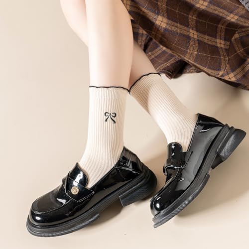 • Feature: Over the Ankle, Frilly Cuff, Embroidery bow,Cute Crew Socks,Delicate and Classic