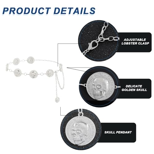 ELABEST Skull Chain Belts Punk Skull Goth Waist Belt Metal Chain Halloween Jewelry for Women 7
