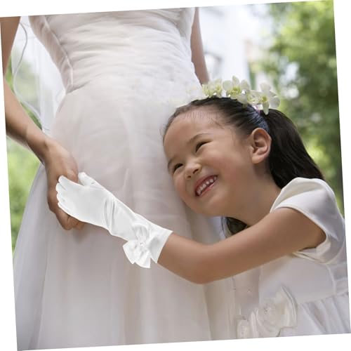 VALICLUD 1Pair Charming Bow Accented Dress Gloves Soft Satin Flower Girl Gloves for Weddings Tea Parties Special Occasions and Gentle Skin 5