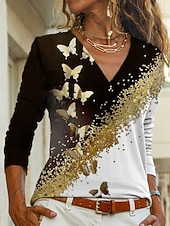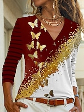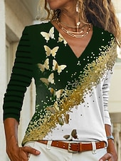 More information about Women's Blouse Butterfly Stylish Modern Long Sleeve V Neck Regular Tops Holiday Going out Print Black Red Blue Green Fall