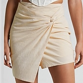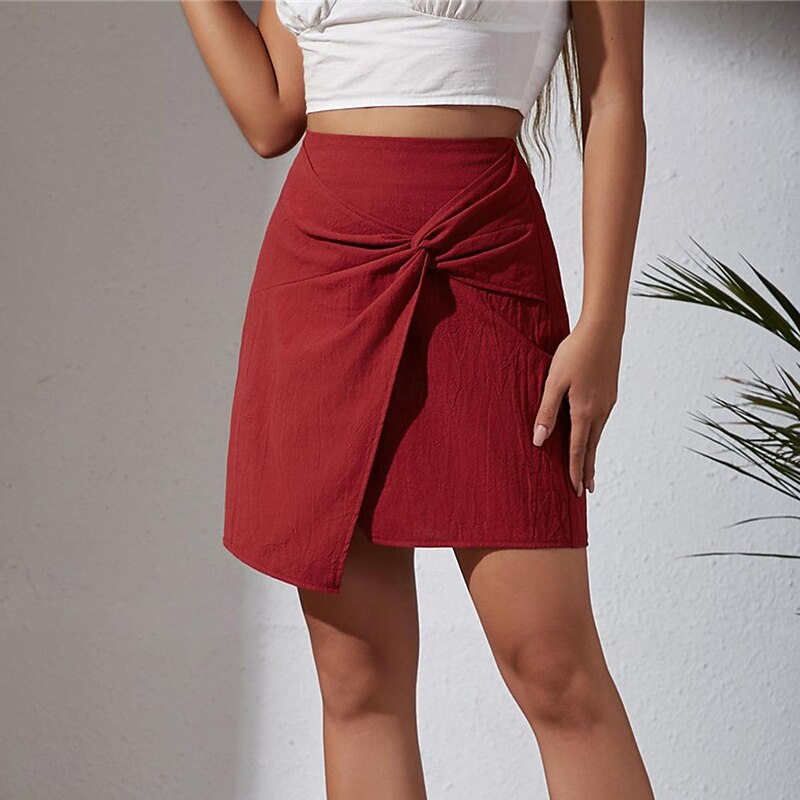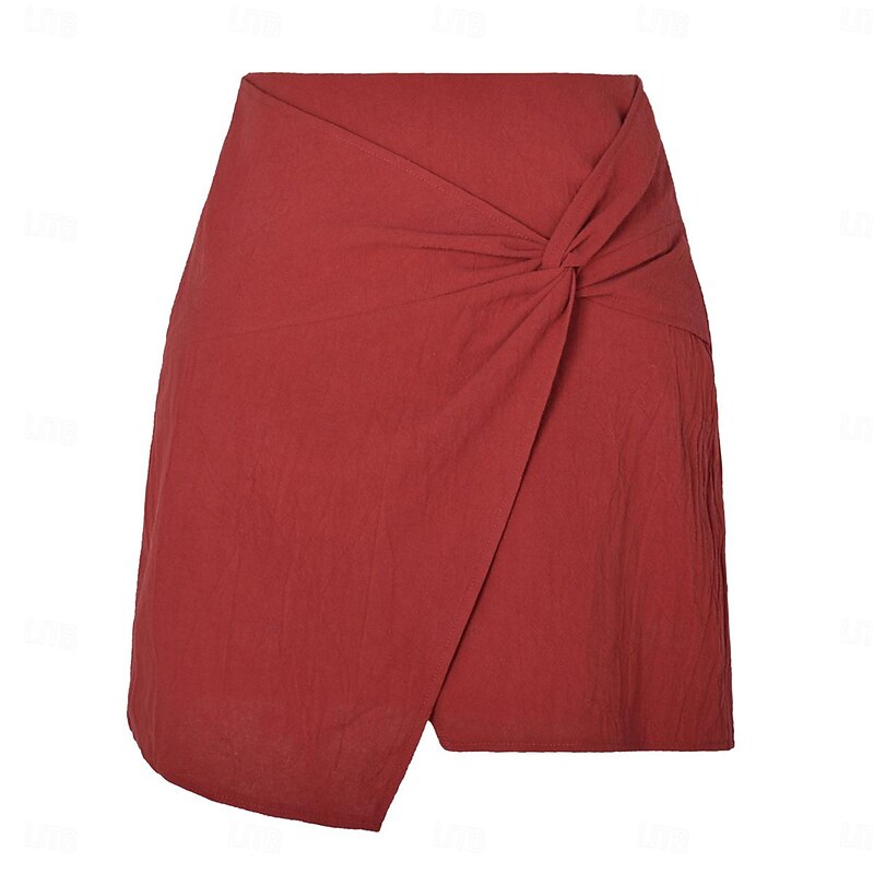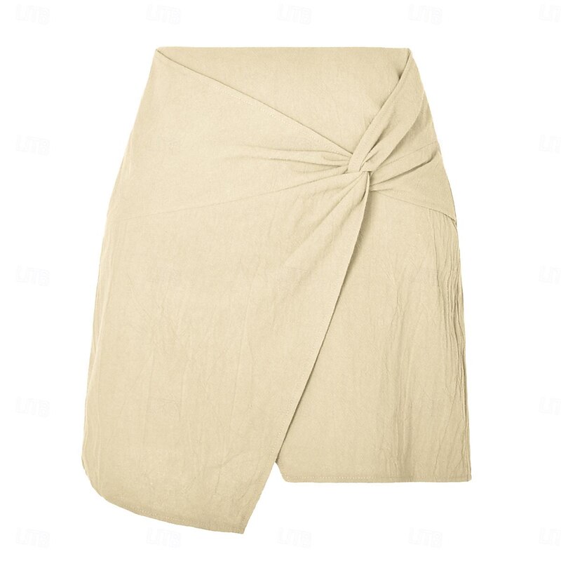 More information about Women's Skirt Linen Skirts Basic Casual Mini High Waist Skirts Solid Colored Split Ends Casual Daily Weekend Wine Black Army Green Apricot Summer Cotton And Linen
