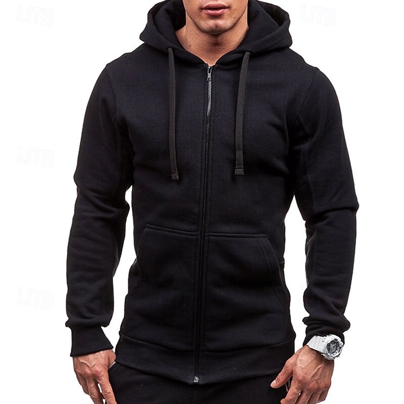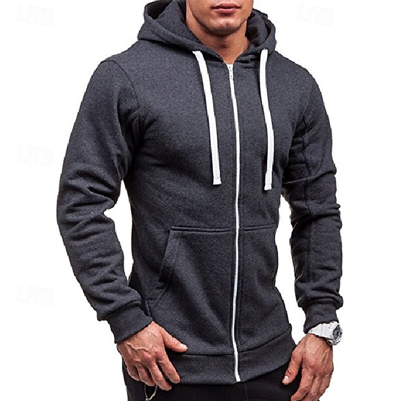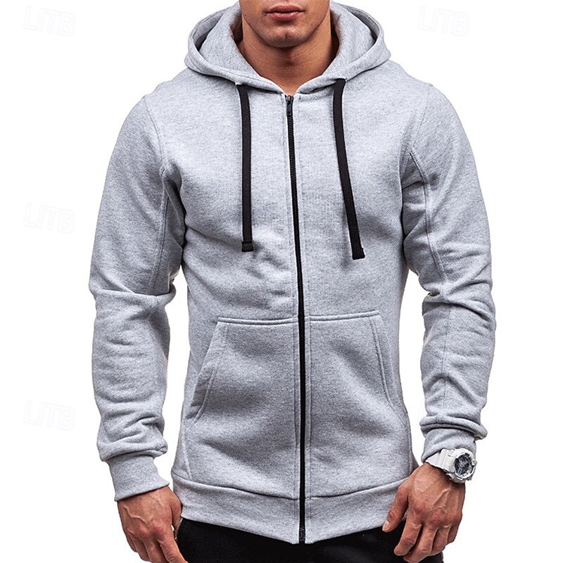 More information about Men's Full Zip Hoodie Zip Up Hoodie Black Wine Navy Blue Light Grey Dark Gray Hooded Plain Zip Up Patchwork Pocket Sports & Outdoor Daily Holiday Polyester Streetwear Basic Casual Spring & Fall
