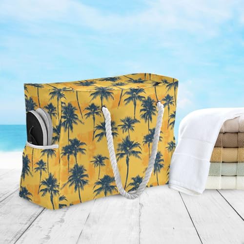 HOT ! JUNZAN Vintage Yellow Tropical Beach Tote Bag with Handles Swim Pool Bag Beach Totes Bags for Women with Waterproof Pockets