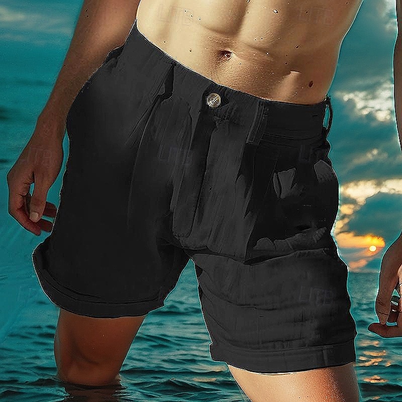 More information about Men's Shorts Linen Shorts Summer Shorts Beach Shorts Button Up Pocket Plain Comfort Breathable Short Vacation Holiday Beach Hawaiian Boho Black White