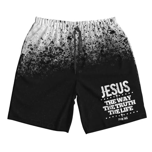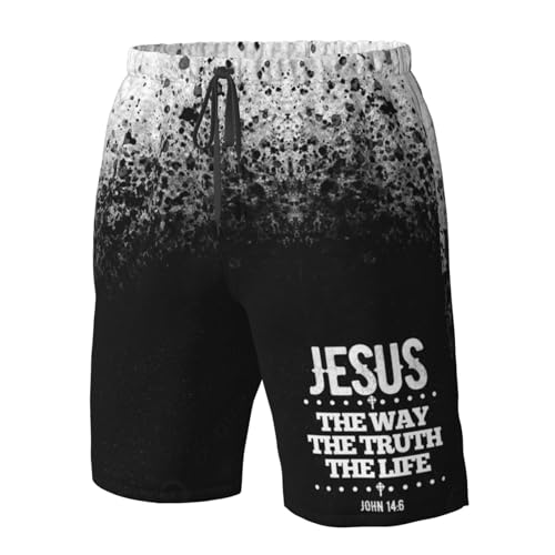 • 【 Funny Men's Swimming Trunks Lining Style】: The Jesus The Way The Truth The Life John 14:6 Mens Board Swim Trunks are suitable for swimming, beach vacation and sports, fitness, or for home etc and the swimsuits by our unique fashional stylish design are the best choice as men's swimwear. BTW, It Is Mens Elastic Waist Swim Trunks And Also Mens Drawstring Swim Trunks.Summer Beach Shorts.Mens Swim Shorts Nice gift ideal for your mens/ husband/ father in this summer.