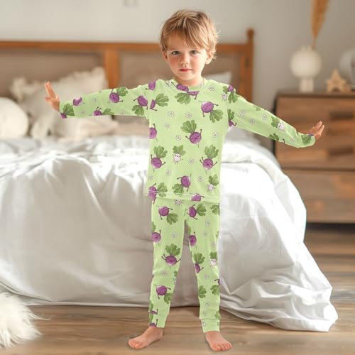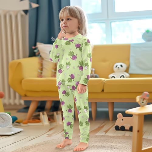 Pajama Sets Long Sleeve Cute Turnip Pattern Prints Soft Comfy Sleepwear 2 Piece PJS 3-8T 2