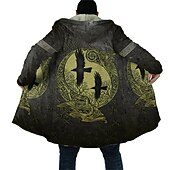 More information about Men's Totem Winter Coat Fleece Jacket Coat Warm Breathable Comfortable Vintage Abstract Sports & Outdoor Daily Wear Going out Zipper Pocket Print Fall & Winter Hoodie Long Sleeve Black Green Gray