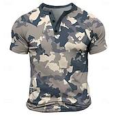 More information about Men's Camouflage T Shirt Henley Shirt Short Sleeve Designer Retro Vintage Street Casual Daily Summer Spring Blue Henley Henley T-Shirt