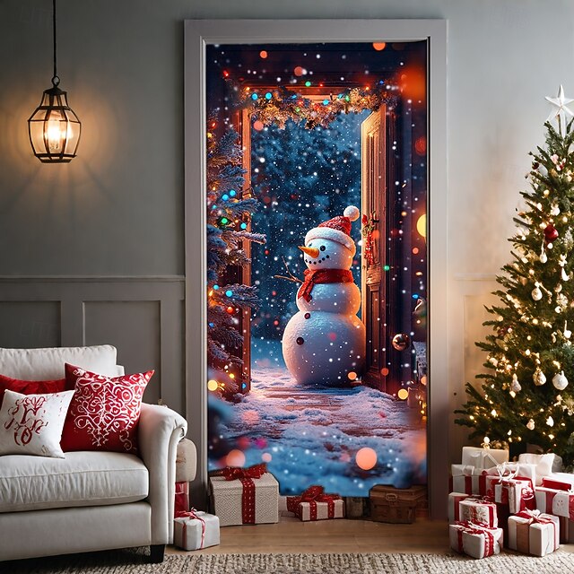 HOT ! Christmas Door Decorations Door Covers Xmas Snowman Fantasy Door Tapestry Door Curtain Decoration Backdrop Door Banner for Front Door Farmhouse Holiday Party Decor Supplies Indoor/Outdoor
