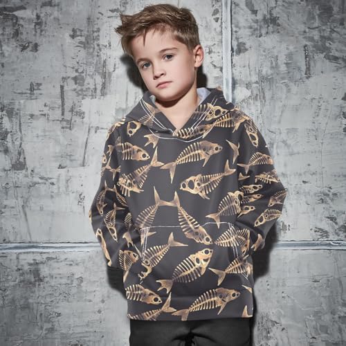KLL Dead Fish Skeletons Boys And Girls Sweatshirts Long Sleeve Hooded Pullover Shirts with Kangaroo Pocket 4