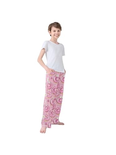 ZZKKO Pink Donuts and Flowers Boys Pants for Kids Jogger Pants with Pockets S 3