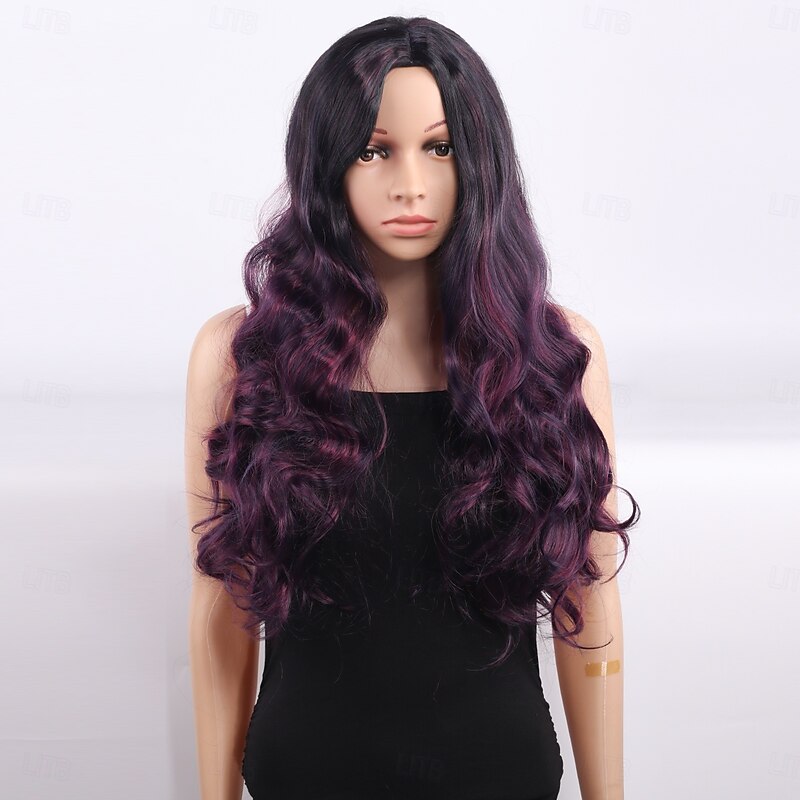 More information about Synthetic Wig Wavy Curly Weave Layered Haircut With Bangs Machine Made Wig 28 inch A1 Synthetic Hair Women's Classic Comfortable Color Gradient Multi-color Mixed Color