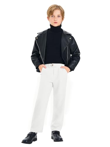 HOT ! Haloumoning Boys Dress Pants Kids Slim Fit Elastic Waist Uniform Trousers with Pockets 5-14 Years