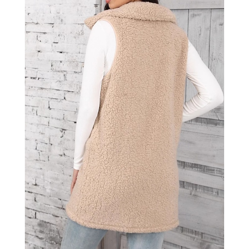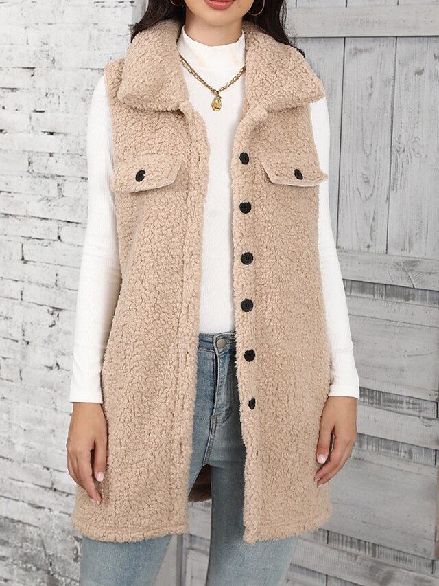 More information about Women's Vest Comfortable Pocket Buttons Casual Solid Color Vacation Street Casual Daily Wear Regular Long Turndown Regular Fit Sleeveless Outerwear Khaki Fall Winter