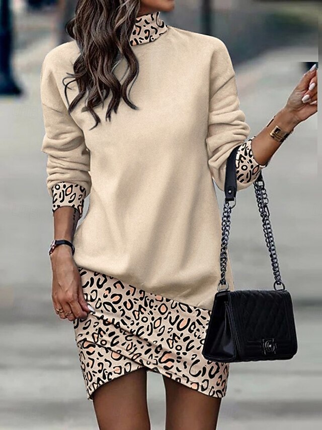 More information about Women's Mini Dress Sheath Dress Casual Daily Regular Fit Floral Striped Long Sleeve High Neck Black White Yellow Apricot Spring Fall Winter