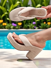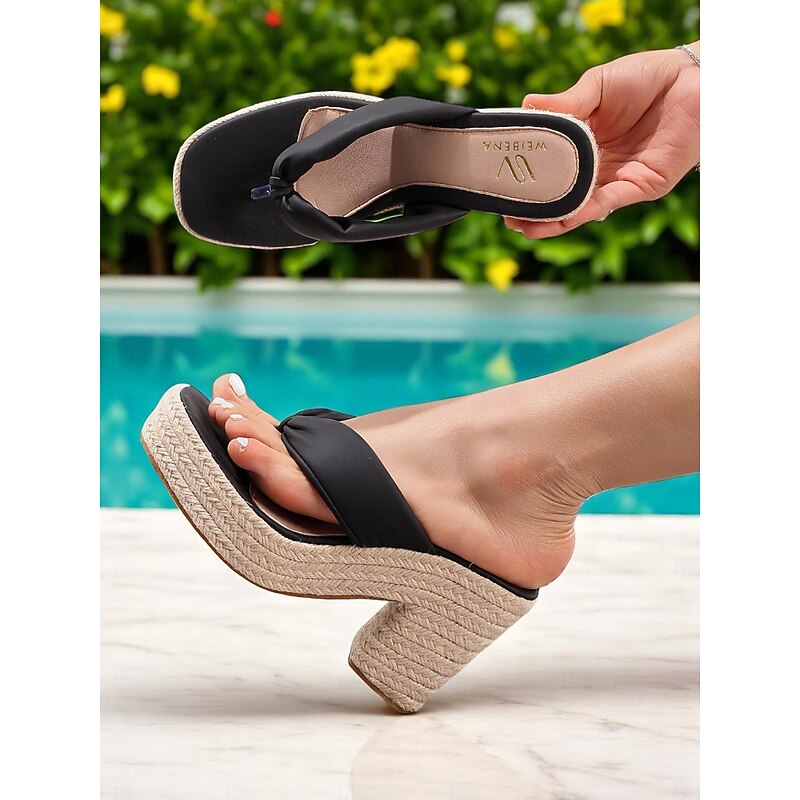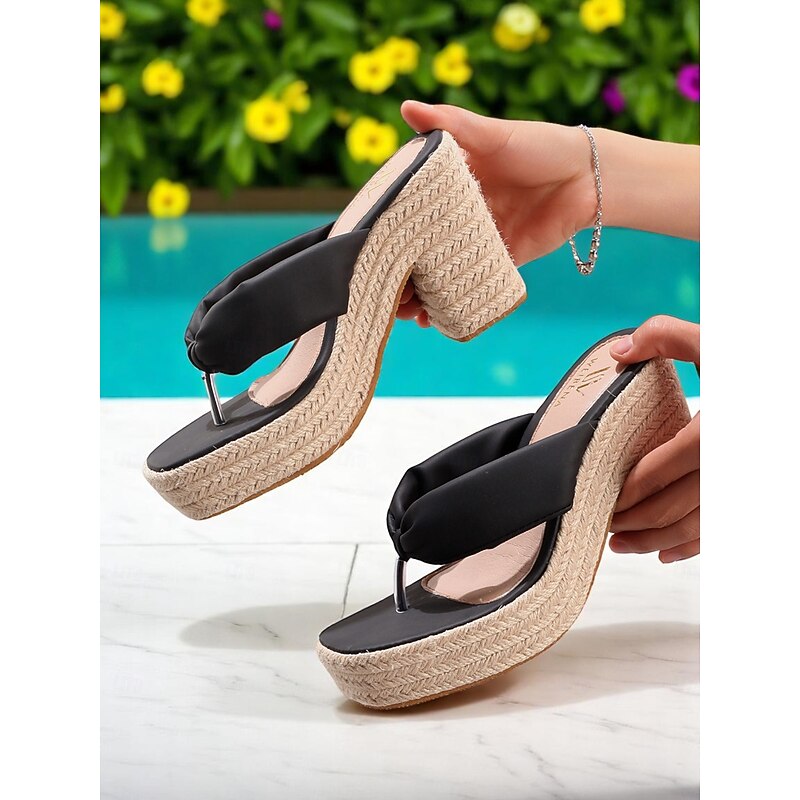 HOT ! Women's Black Knotted Platform Wedge Flip Flops – Boho Summer Vacation Sandals with Espadrille Heels for Poolside, Beach, and Casual Outfits