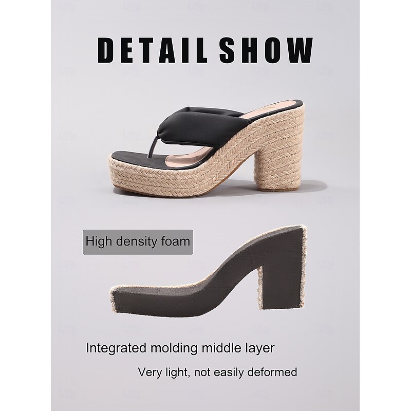 Women's Black Knotted Platform Wedge Flip Flops – Boho Summer Vacation Sandals with Espadrille Heels for Poolside, Beach, and Casual Outfits 11