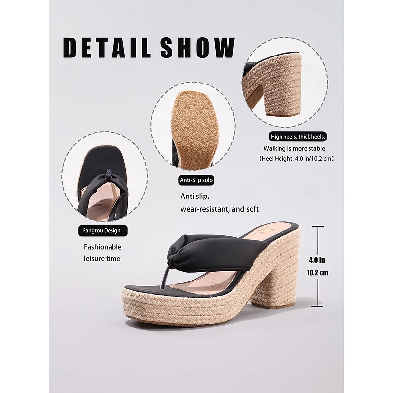 More information about Women's Black Knotted Platform Wedge Flip Flops – Boho Summer Vacation Sandals with Espadrille Heels for Poolside, Beach, and Casual Outfits